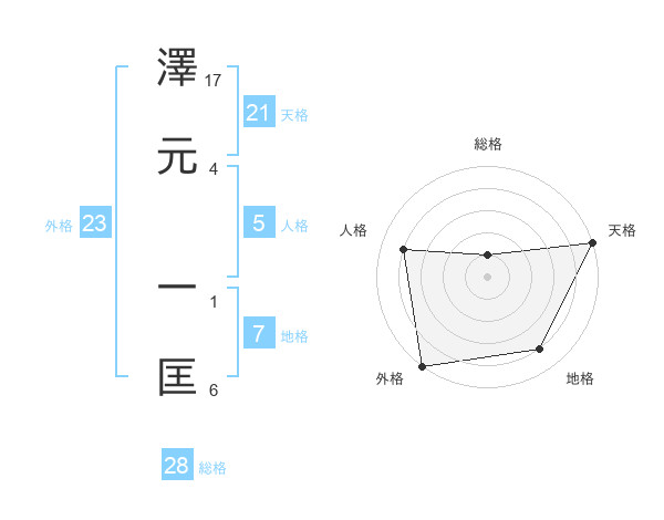 澤元 一匡さんの外格は23画の5点!