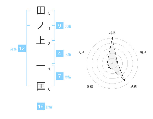 田ノ上 一匡さんの総格は16画の5点!