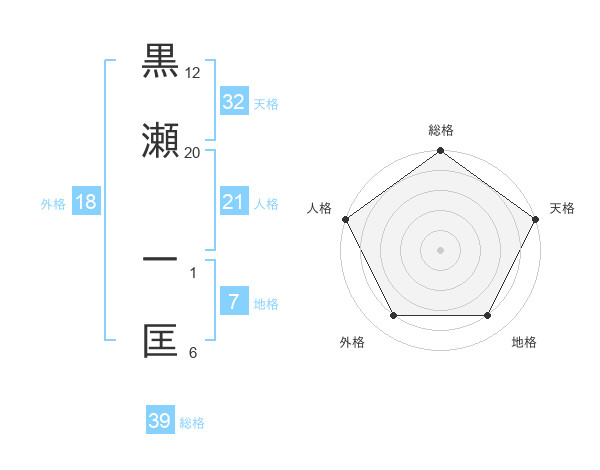 黒瀬 一匡さんの総格は39画の5点!