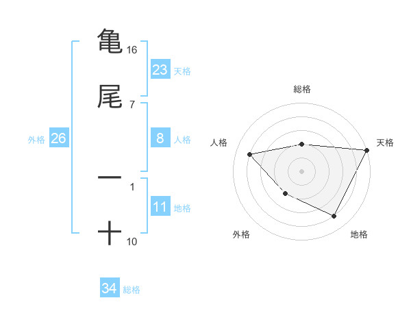 亀尾 一十さんを姓名の画数から五運を鑑定