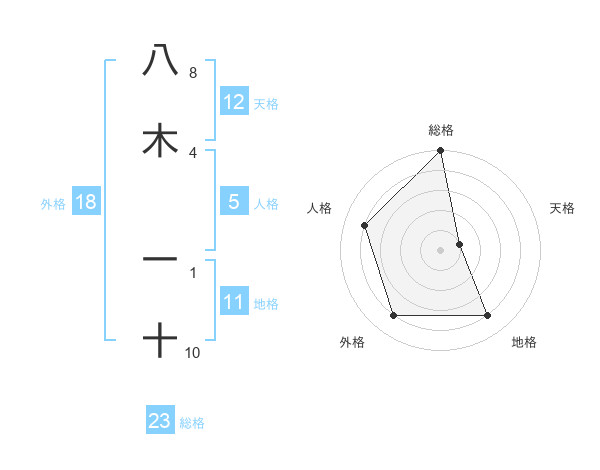 八木 一十さんの総格は23画の5点!