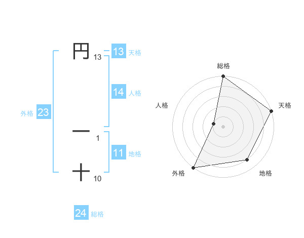 円 一十さんの総格は24画の5点!