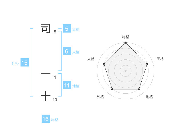 司 一十さんの総格は16画の5点!