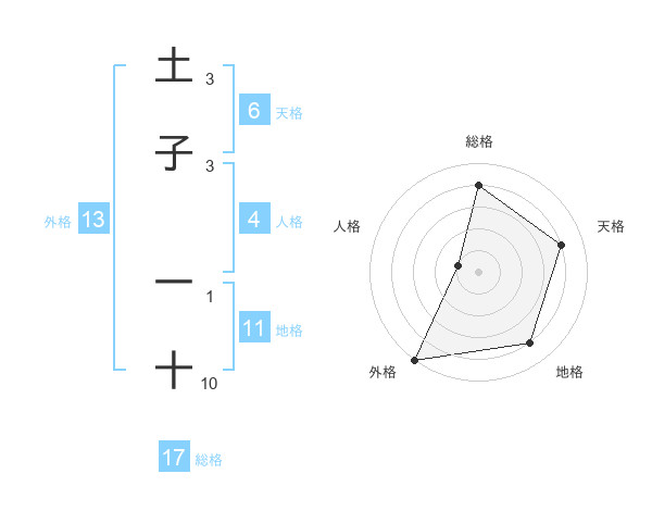 土子 一十さんの外格は13画の5点!