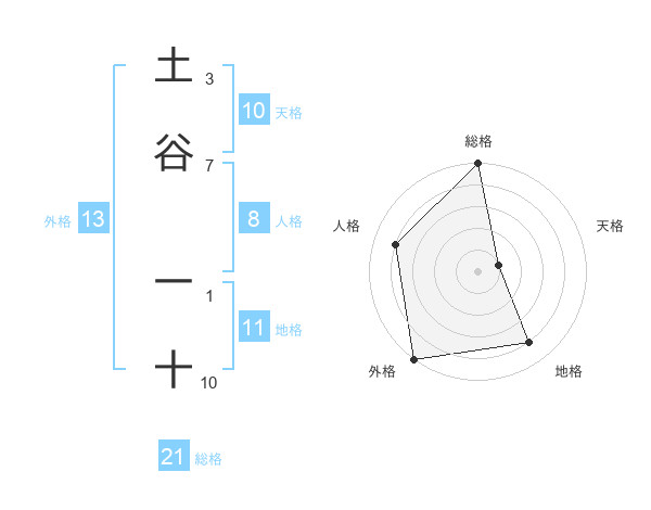 土谷 一十さんの総格は21画の5点!