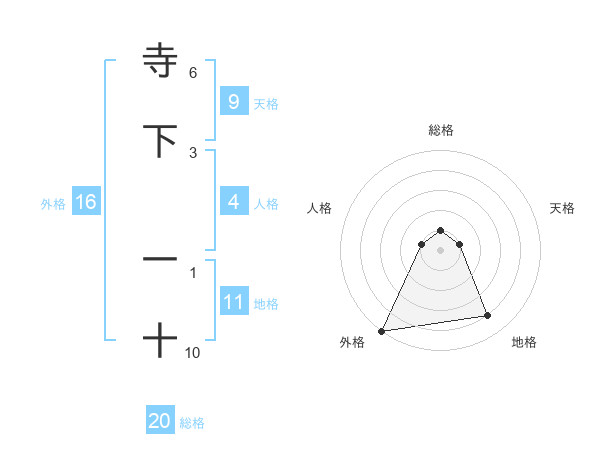寺下 一十さんの総格は20画の1点!