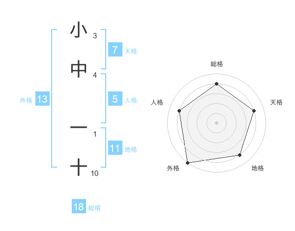 小中 一十さんの外格は13画の5点!