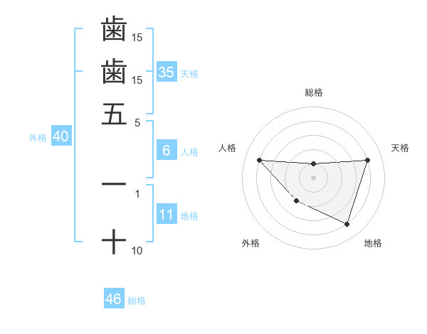 歯歯五 一十さんの総格は46画の1点!