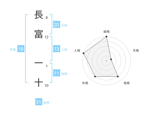 長富 一十さんの総格は31画の5点!