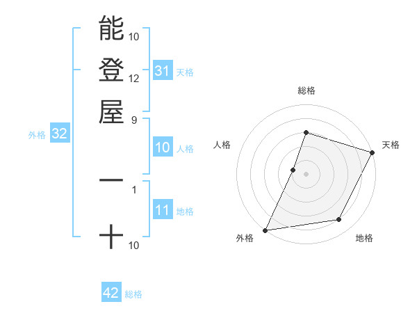 能登屋 一十さんを姓名の画数から五運を鑑定