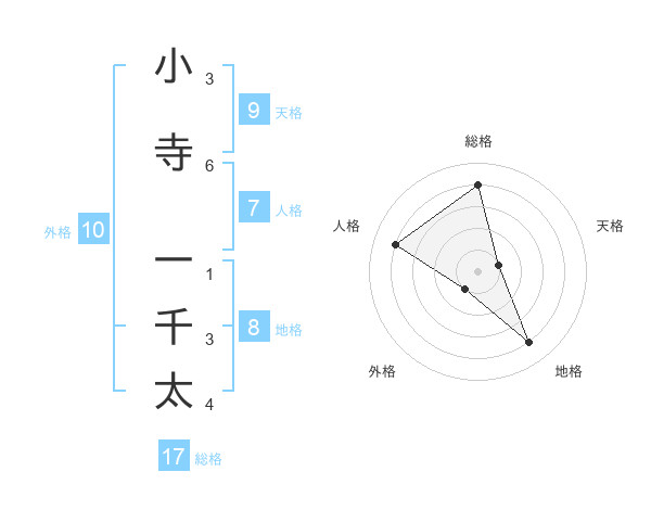 小寺 一千太さんを姓名の画数から五運を鑑定