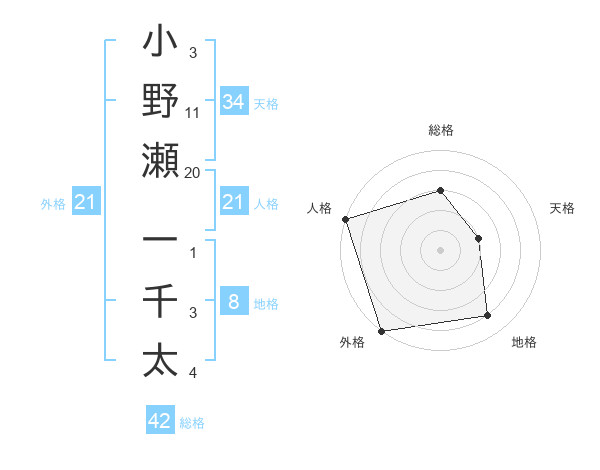 小野瀬 一千太さんを姓名の画数から五運を鑑定