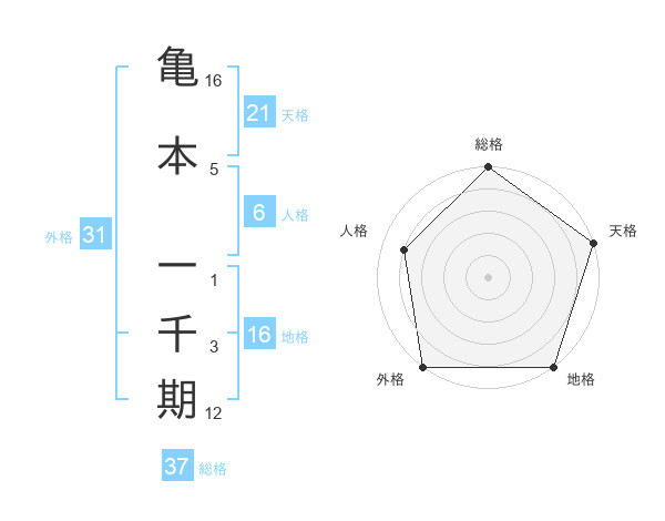 亀本 一千期さんを姓名の画数から五運を鑑定