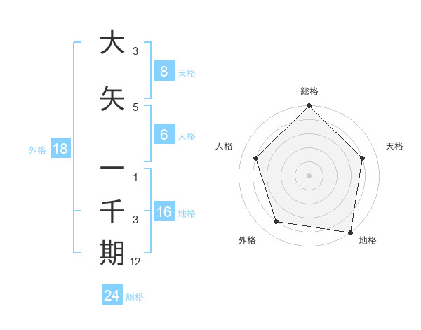 大矢 一千期さんの総格は24画の5点!
