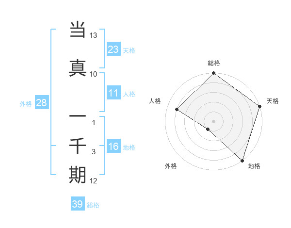 当真 一千期さんの天格は23画の5点!