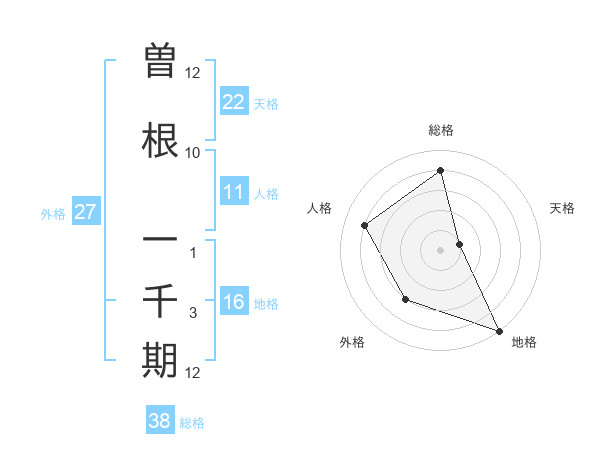 曽根 一千期さんを姓名の画数から五運を鑑定