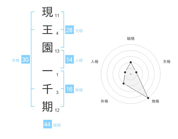 現王園 一千期さんを姓名の画数から五運を鑑定