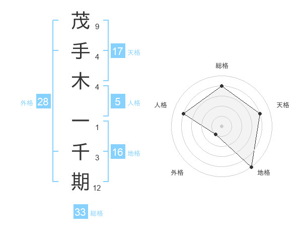 茂手木 一千期さんを姓名の画数から五運を鑑定