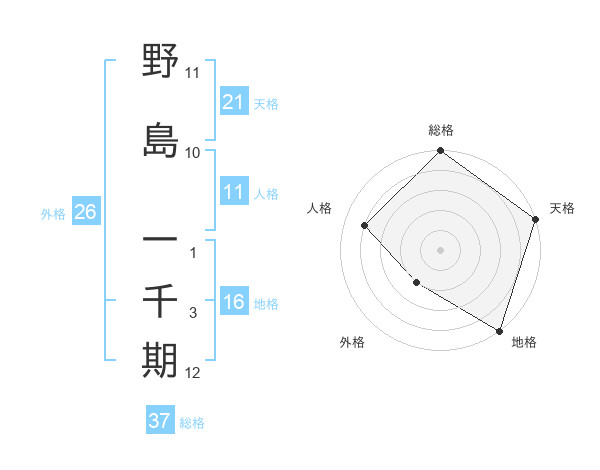 野島 一千期さんの総格は37画の5点!