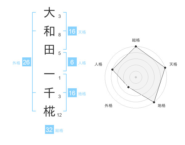 大和田 一千椛さんを姓名の画数から五運を鑑定