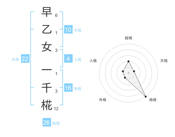 早乙女 一千椛さんを姓名の画数から五運を鑑定