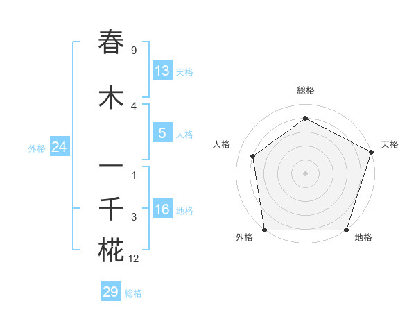 春木 一千椛さんを姓名の画数から五運を鑑定