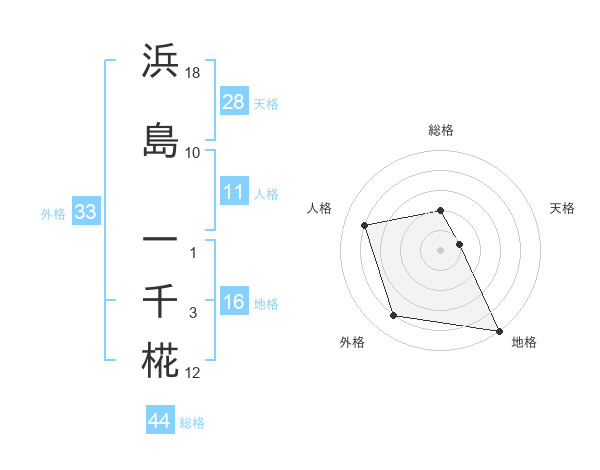 浜島 一千椛さんを姓名の画数から五運を鑑定