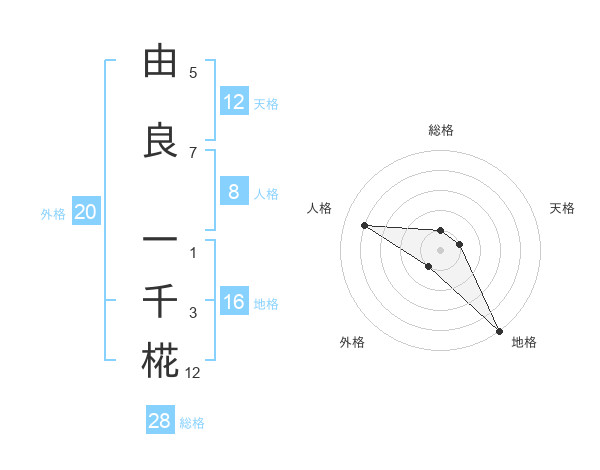 由良 一千椛さんを姓名の画数から五運を鑑定