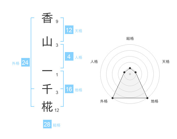 香山 一千椛さんを姓名の画数から五運を鑑定