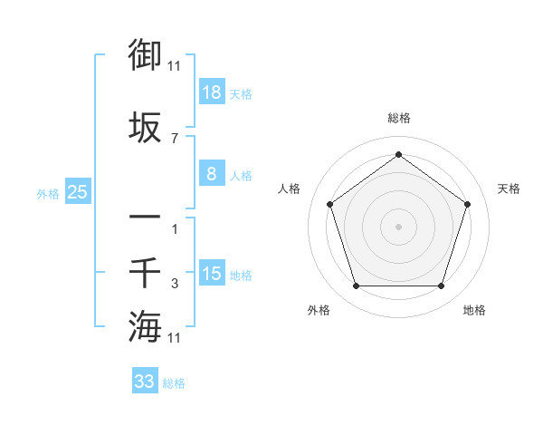 御坂 一千海さんを姓名の画数から五運を鑑定
