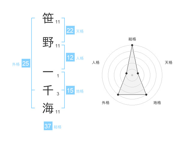 笹野 一千海さんを姓名の画数から五運を鑑定
