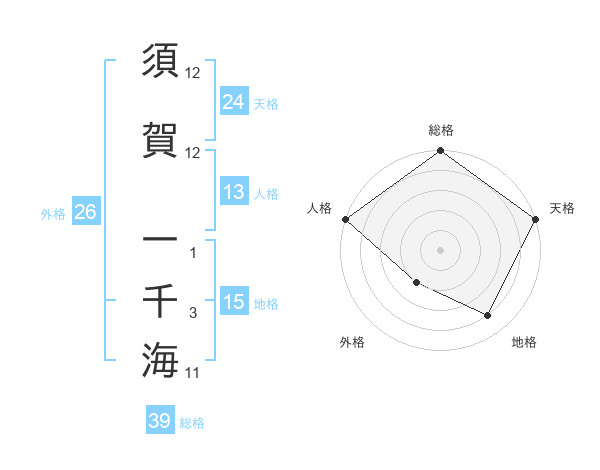 須賀 一千海さんを姓名の画数から五運を鑑定