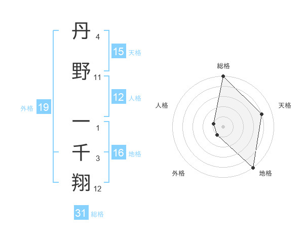 丹野 一千翔さんの天格は15画の4点!