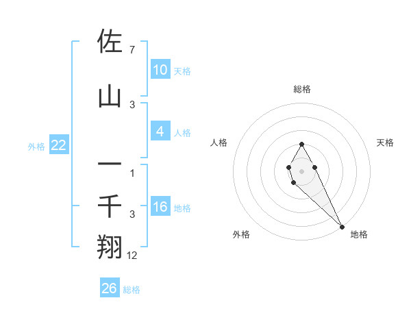 佐山 一千翔さんの総格は26画の2点