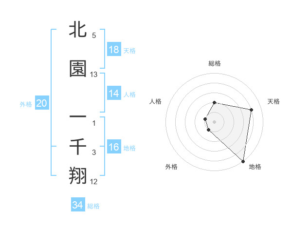 北園 一千翔さんの天格は18画の4点!