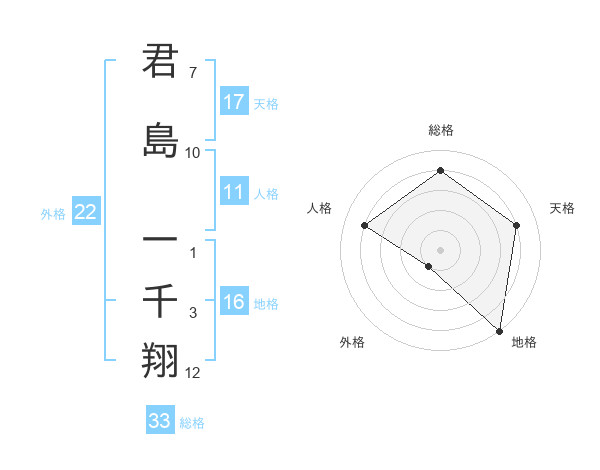 君島 一千翔さんを姓名の画数から五運を鑑定