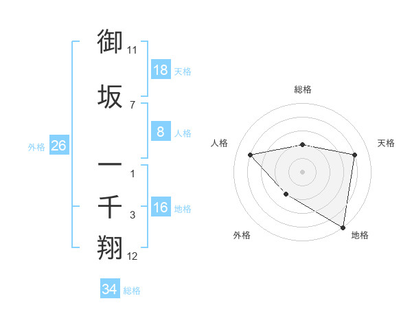 御坂 一千翔さんを姓名の画数から五運を鑑定