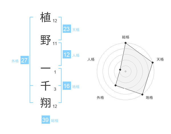 植野 一千翔さんを姓名の画数から五運を鑑定