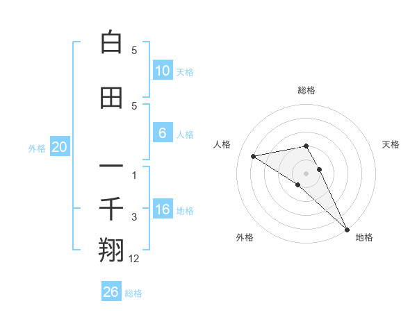 白田 一千翔さんの総格は26画の2点!