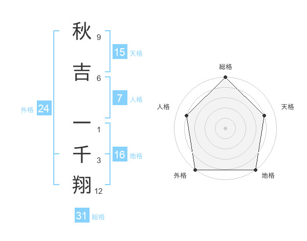 秋吉 一千翔さんを姓名の画数から五運を鑑定