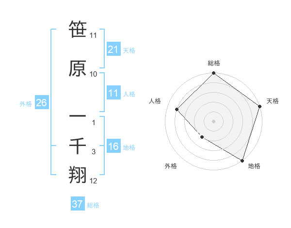 笹原 一千翔さんの総格は37画の5点!
