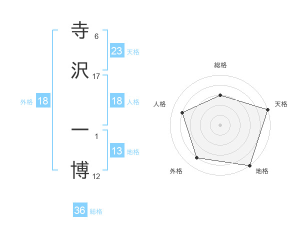 寺沢 一博さんの天格は23画の5点!