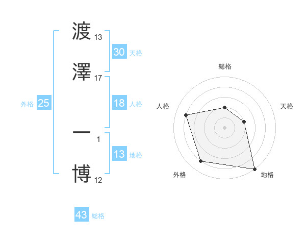 渡澤 一博さんの総格は43画の2点!