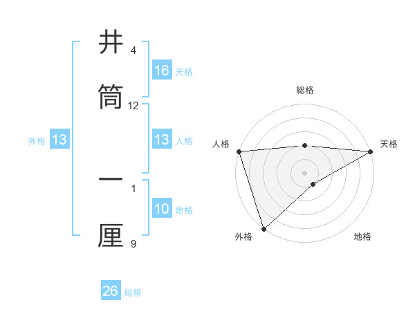 井筒 一厘さんの総格は26画の2点!