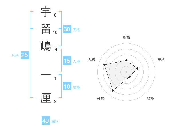 宇留嶋 一厘さんの総格は40画の2点!
