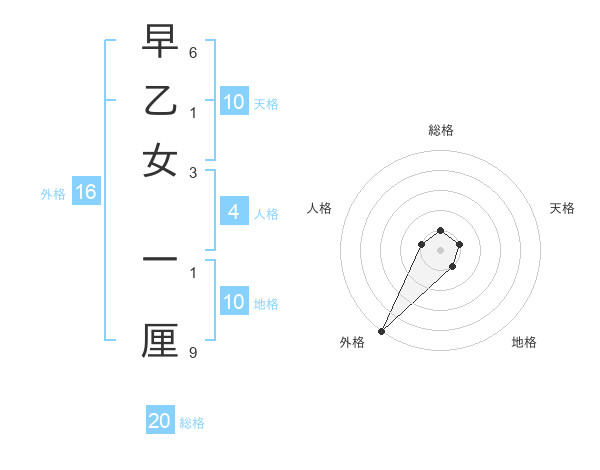 早乙女 一厘さんを姓名の画数から五運を鑑定