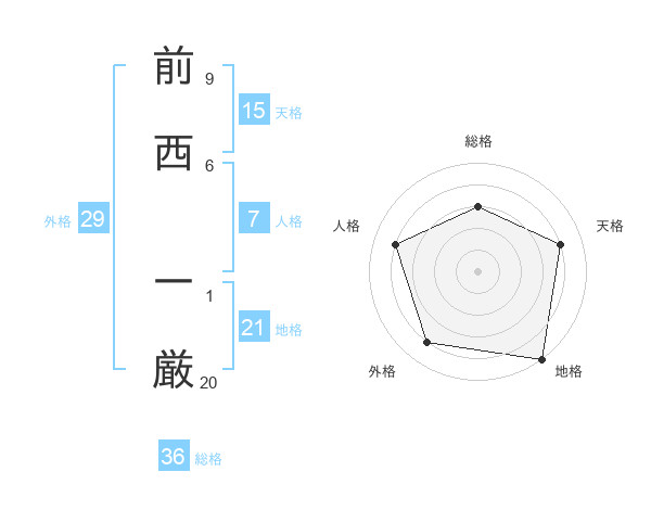前西 一厳さんの外格は29画の4点!