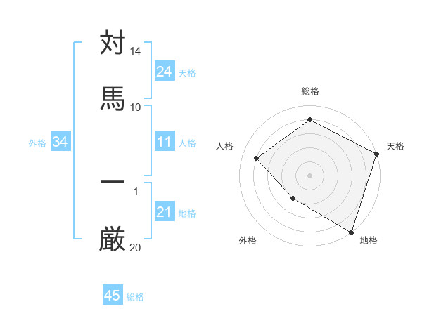 対馬 一厳さんを姓名の画数から五運を鑑定