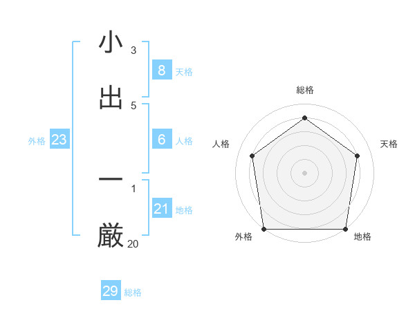 小出 一厳さんの総格は29画の4点!