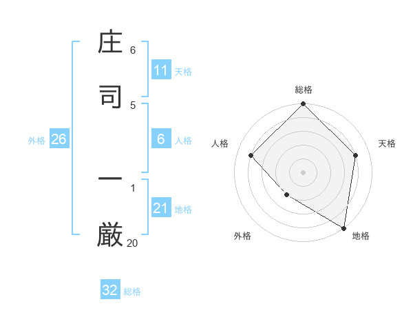庄司 一厳さんを姓名の画数から五運を鑑定
